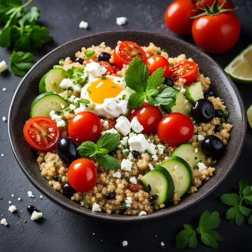 Eine nahrhafte und köstliche Frühstücksschale inspiriert von griechischen Aromen.