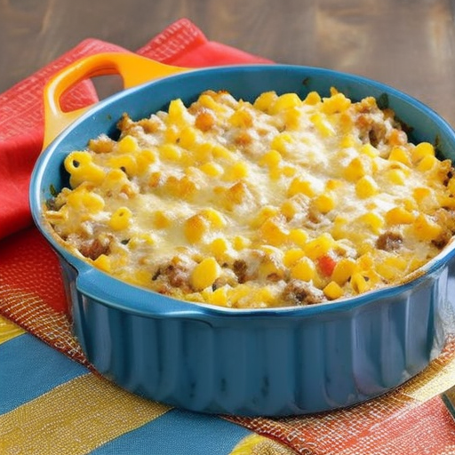Ein köstliches Gericht mit Hackfleisch, Mais, Reis und Käse