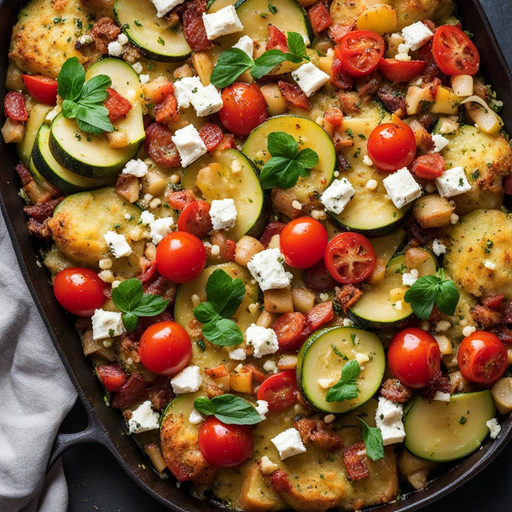 Ein aromatischer und gesunder vegetarischer Auflauf mit einer Kombination aus Zucchini, Kartoffeln, Feta-Käse und mehr!