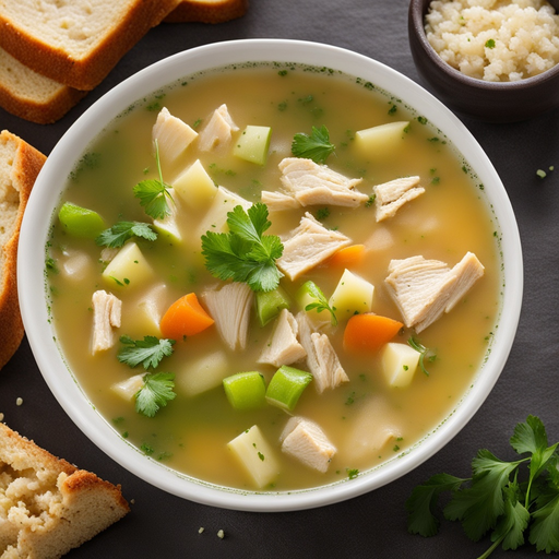 Eine tröstliche und schmackhafte Suppe aus frischen Zwiebeln, Sellerie und Hühnerbouillon zubereitet.