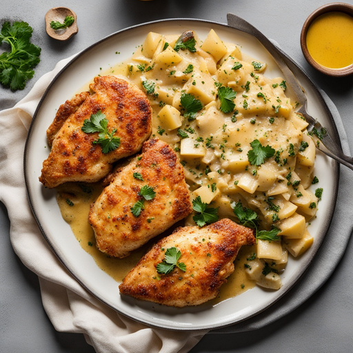 Knusprige und saftige, in einer reichen Knoblauchbutter-Sauce ertränkte, gebratene Hähnchenbrust. Eine perfekte Option für das Abendessen unter der Woche, die in kürzester Zeit fertig ist!