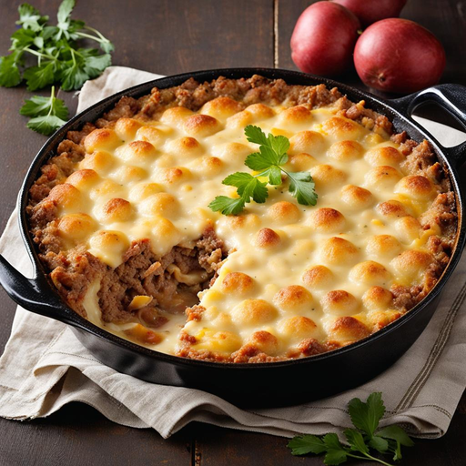 Ein herzhaftes und cremiges Auflaufgericht mit Rinderhackfleisch, Kartoffeln und einem Hauch Parmesankäse.