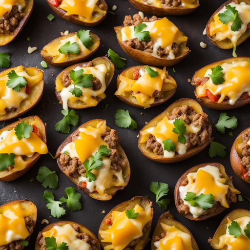 8. 8. Stuff each potato skin with the beef mixture and top with shredded cheese.