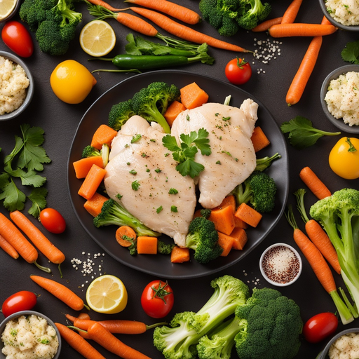 Ein einfaches und gesundes Gericht aus gekochtem Hähnchen und Gemüse