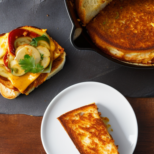 Ein schmackhaftes und käsiges Sandwich mit einer würzigen Note von Chorizo und sauren Bananenpfeffern