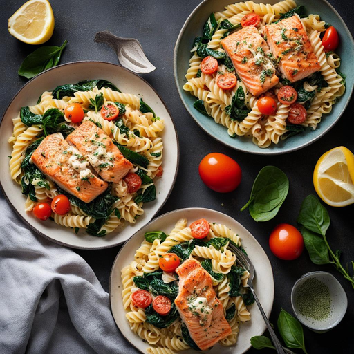 Ein köstliches und cremiges Pastagericht mit zarten Lachsfilets, Spinat und einer knoblauchigen Frischkäsesauce.