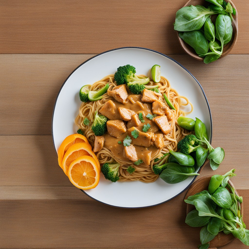 Ein leckeres und herzhaftes Pfannengericht mit zartem Hühnchen und buntem Gemüse in einer cremigen Erdnussbuttersoße.