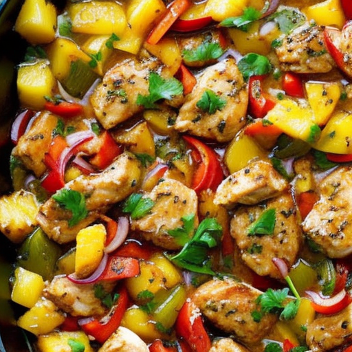 Ein köstliches Gericht mit saftigem Hühnchen, süßer Ananas und knackiger Paprika.