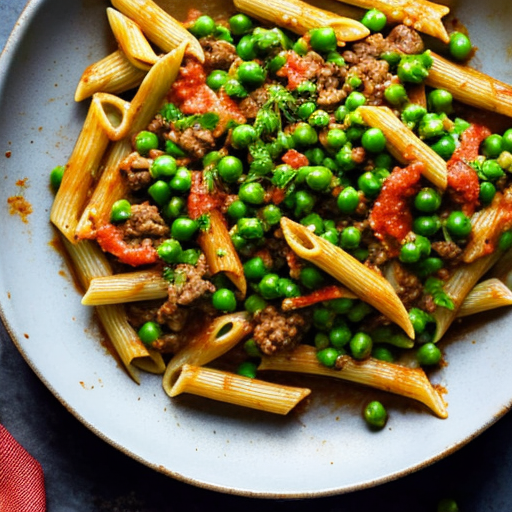 Ein herzhaftes und cremiges Nudelgericht mit Rinderhackfleisch, Erbsen und einem würzigen Kick von Sriracha