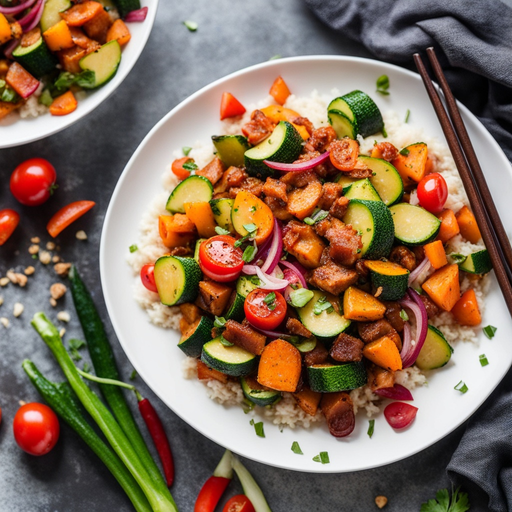 Ein köstliches und herzhaftes Gericht mit Honig, Knoblauch, Speck und einer Mischung aus Gemüse und Reis.