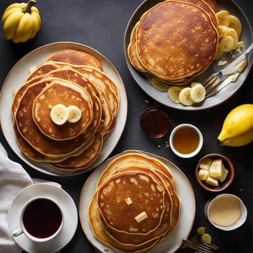 Ein köstliches und luftiges Frühstücksgericht aus reifen Bananen, das mit Ahornsirup übergossen wird