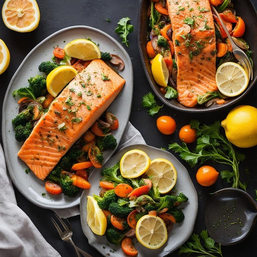 Ein geschmackvolles und gesundes Gericht mit zarten Lachsfilets, die mit einer würzigen Zitronen-Knoblauch-Marinade gebacken werden.
