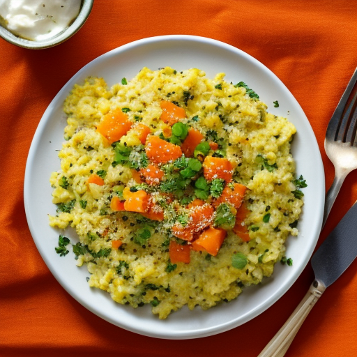 Ein leckeres und gesundes Gericht aus Blumenkohlreis, Cheddar-Käse und Gemüse.