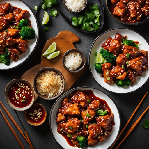 Eine gesündere Version des klassischen chinesischen Gerichts General Tso's Chicken, das perfekt gebacken und mit einer aromatischen Sauce überzogen ist.