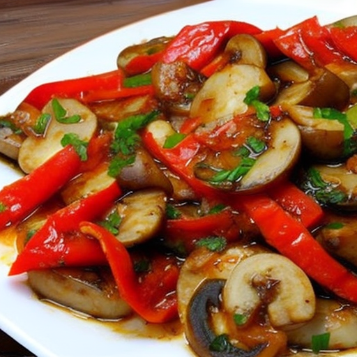 Ein köstliches Gericht mit gebratenen roten Paprika und Champignons.