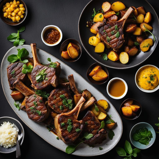 8. 8. Die Hoisin-Lammkoteletts mit den Kurkuma-Kartoffeln servieren, garniert mit frischen Minzblättern.