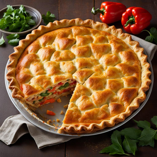 Ein köstlicher und herzhafter Kuchen gefüllt mit Hackfleisch und Paprika, umhüllt von einem knusprigen Teig.