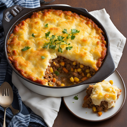 Ein tröstliches und herzhaftes Gericht mit Schichten aus gewürztem Rinderhackfleisch, süßem Mais und cremigen Kartoffelpüree.