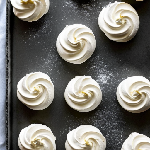 6. Mit einem Löffel kleine Nester oder Formen aus der Baiser-Mischung auf das Backblech geben.
