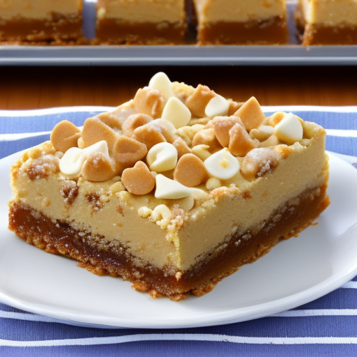 Köstliche Riegel mit Erdnussbutter, weißer Schokolade und Karamell