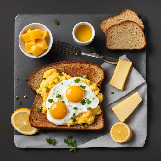 Ein köstliches und zufriedenstellendes Frühstücksgericht, das die Cremigkeit von Cheddar-Käse mit der Fülle von Eiern kombiniert, alles auf einer Scheibe gerösteten Brotes serviert.