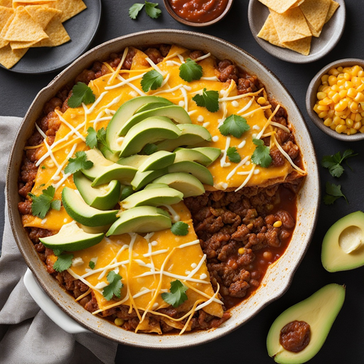 Ein köstliches und tröstliches Auflaufgericht aus Rinderhackfleisch, Maistortillas und klebrigem Cheddar-Käse.