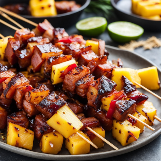 Ein köstliches und herzhaftes Gericht mit geräucherter Wurst, Speck und süßer Ananas mit einer würzigen Barbecue-Note.