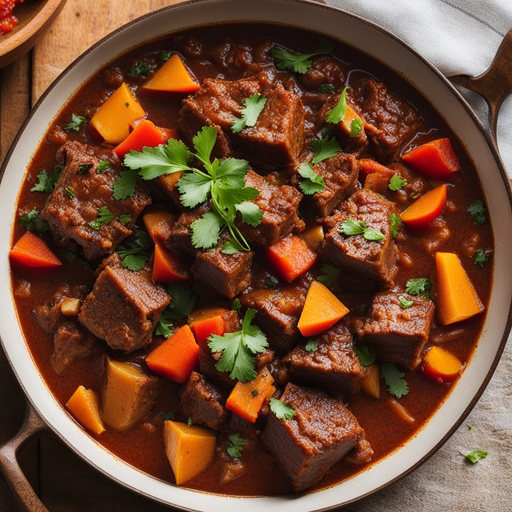 Ein köstlicher und aromatischer Kokosnuss-Lamm-Eintopf mit einem Hauch von Süße durch getrocknete Feigen und Aprikosenmarmelade, perfekt für eine wärmende Mahlzeit.