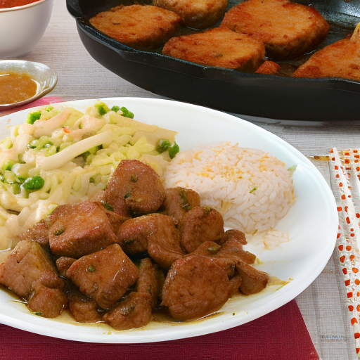 Ein leckeres Gericht aus gebratenem Rindfleisch und Garnelen.