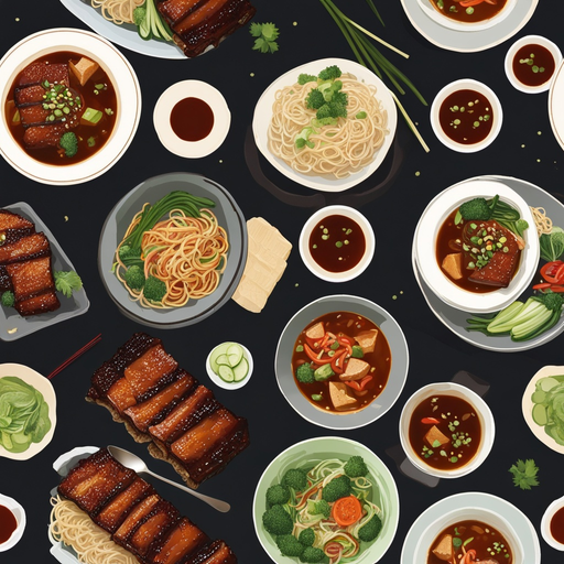 Zarte Schweinerippchen glasiert mit Hoisin-Sauce serviert mit aromatischen Ramen-Nudeln und Gemüse