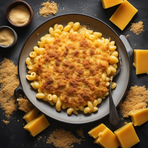 6. 6. Semmelbrösel über die Macaroni-Mischung streuen.