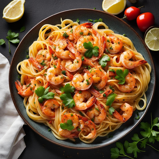 Ein würziges und scharfes Gericht, das saftige Garnelen mit einer feurigen Pastasoße kombiniert