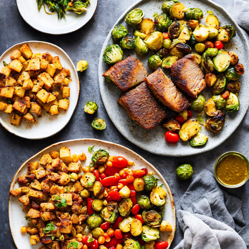 Ein köstliches und herzhaftes Gericht mit zartem Schweinefleisch, Knoblauchbutter-Kartoffeln und einer Mischung aus Gemüse, gewürzt mit Old Bay Gewürz.