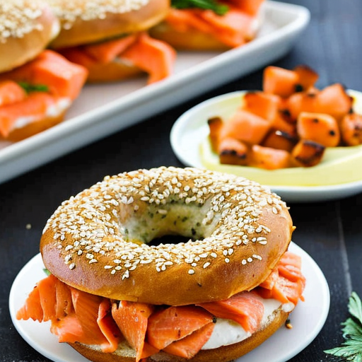 Leckere Bagels mit Knoblauchbutter und herzhaften Lachsstücken