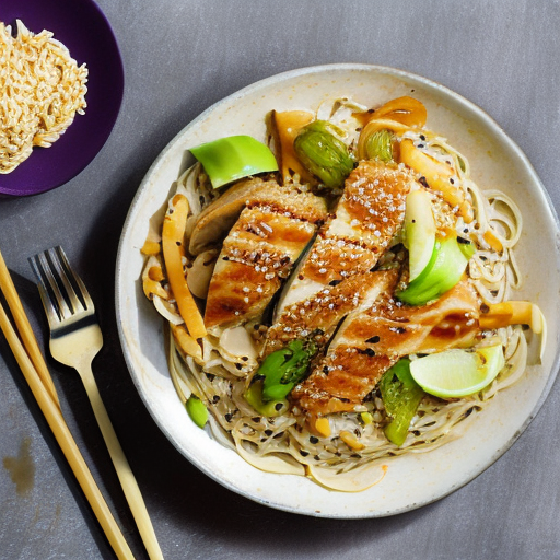 Ein köstliches und cremiges Pfannengericht mit Hähnchen, Nudeln und Erdnussbutter.