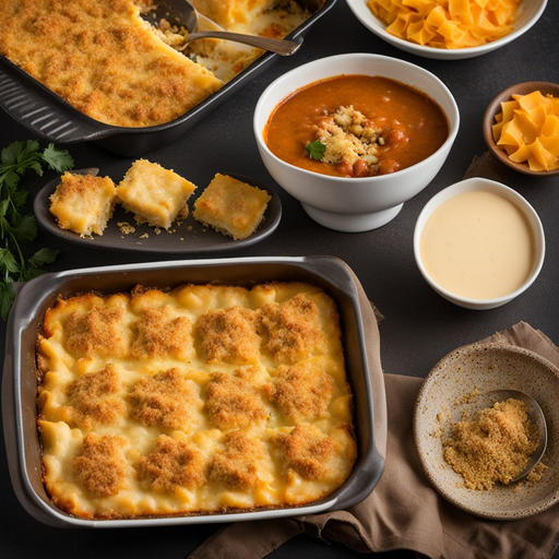Ein köstliches und käsiges Beilagengericht aus Käse-Ravioli, drei Arten von Käse und einer knusprigen Brotkrumenkruste.