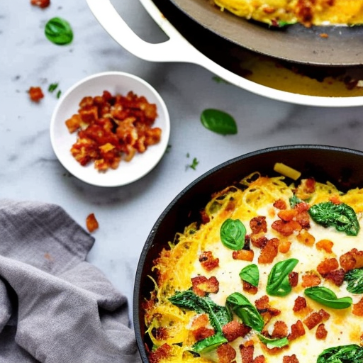 Ein tröstliches und schmackhaftes Auflaufgericht aus Spaghettikürbis, Speck und einer Mischung köstlicher Zutaten