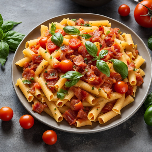 Ein köstliches Nudelgericht mit knusprigem Pancetta und frischen Tomaten
