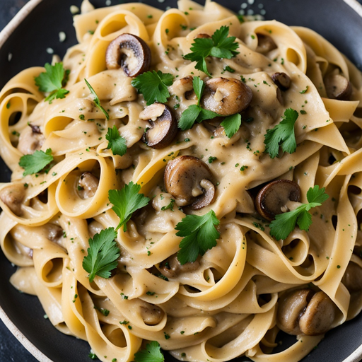 Ein reichhaltiges und cremiges Pastagericht mit einer aromatischen Pilzsoße.