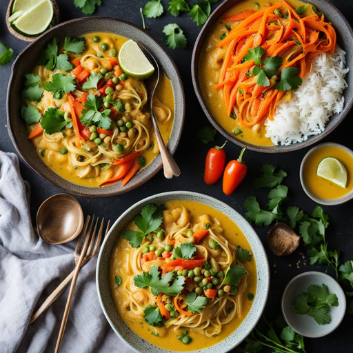 A flavorful and comforting noodle bowl with split peas, rice noodles, and a creamy coconut curry sauce