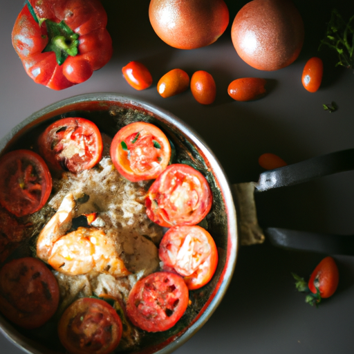 A flavourful one-pot meal featuring chicken and tomatoes, flavoured with onion, herbs, and spices.