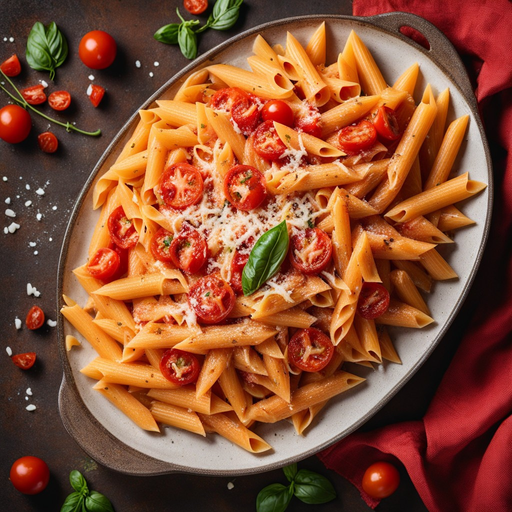 5. 5. Serve the creamy tomato penne pasta hot, topped with grated parmesan cheese.