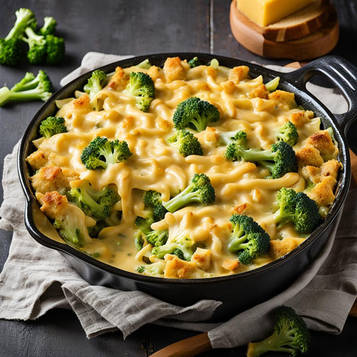 A comforting and creamy casserole with noodles, broccoli, and a cheesy sauce