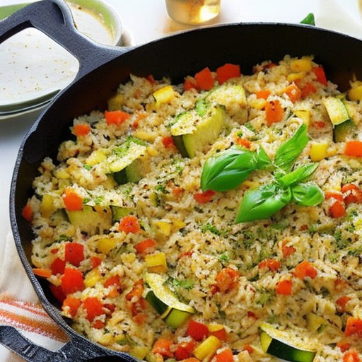 A delicious and healthy rice dish with the flavors of onion, paprika, and zucchini.