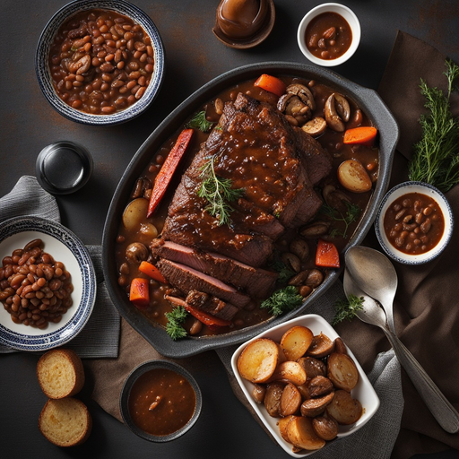 A hearty and flavorful dish featuring tender beef, beans, and a rich burgundy wine sauce