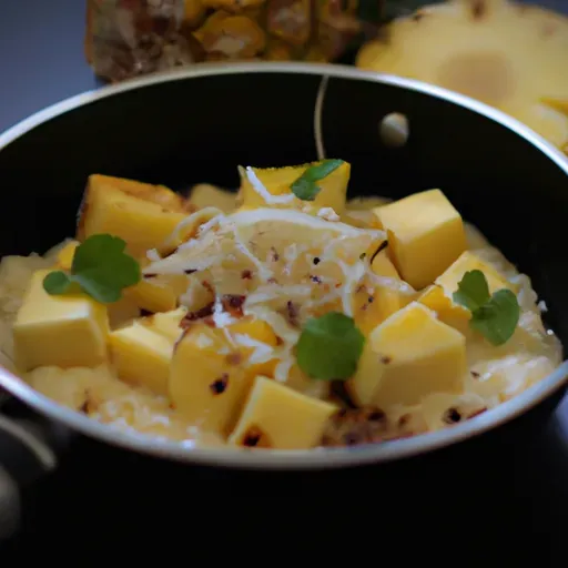 This is a delicious and nutritious main dish that combines the sweet flavour of pineapple and banana with the savoury flavour of cheese, onions and tofu. The porridge and maple syrup add texture and sweetness. It's a great way to start any meal!
