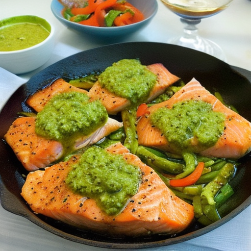 Pan-Seared Salmon with Pesto and Veggies