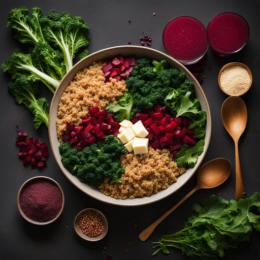 A hearty and nutritious bowl featuring red beets, kale, green lentils, and quinoa