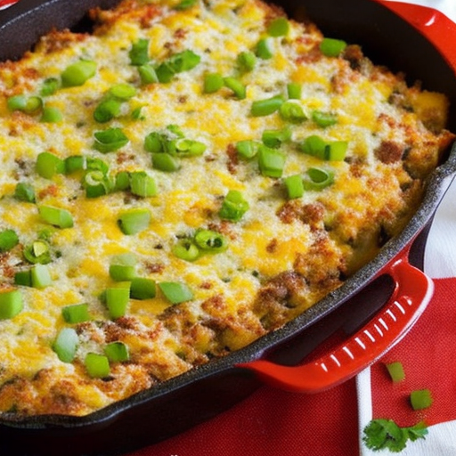 A savory casserole made with ground beef, cornbread mix, and vegetables