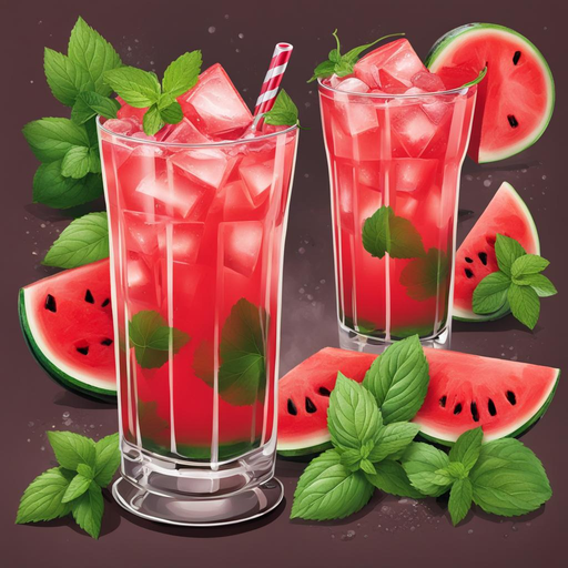 A refreshing drink perfect for a hot summer day, with a hint of mint and the sweetness of watermelon.